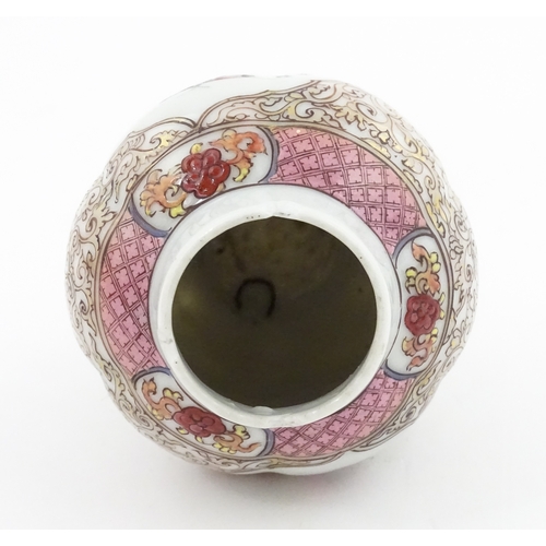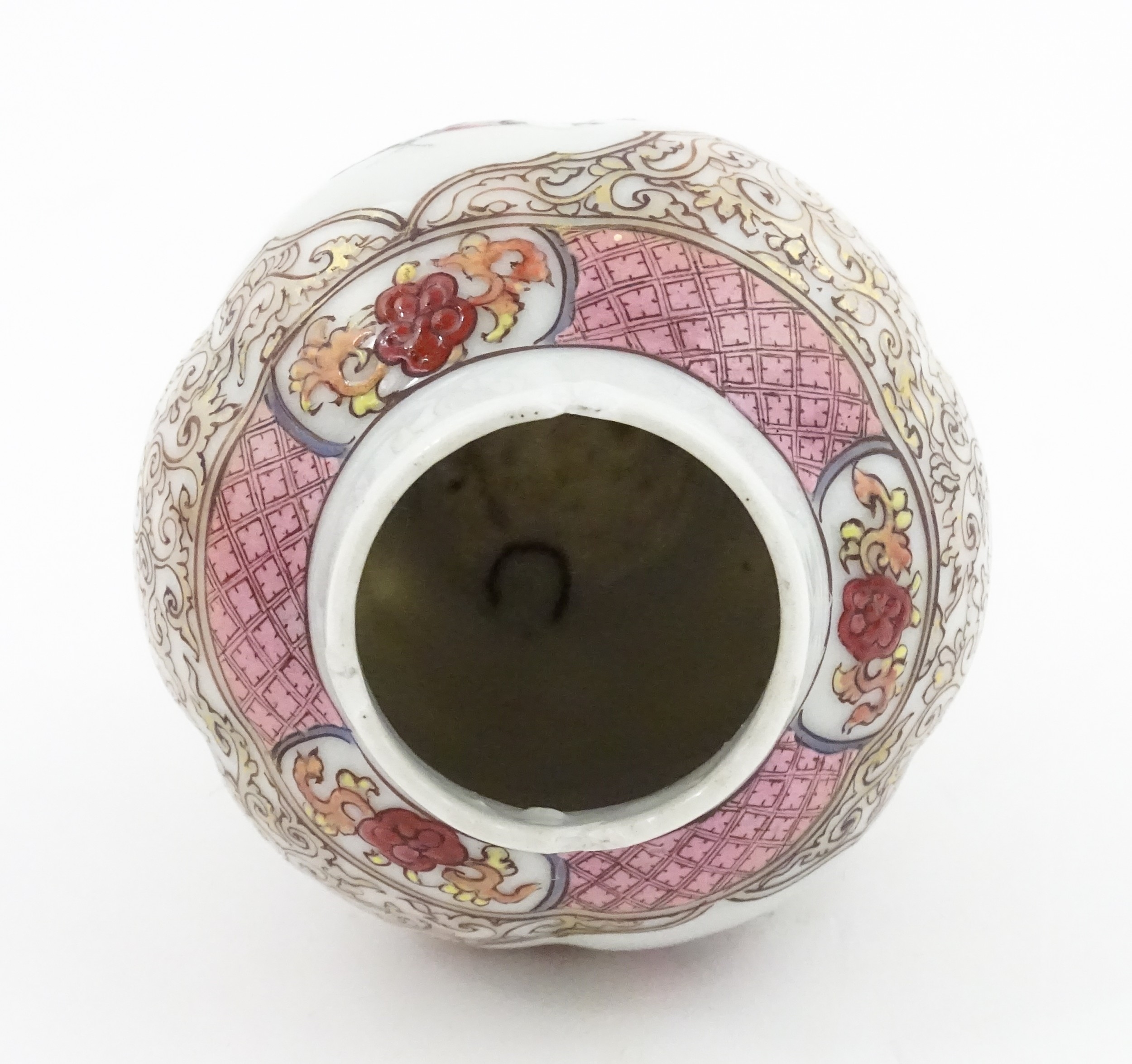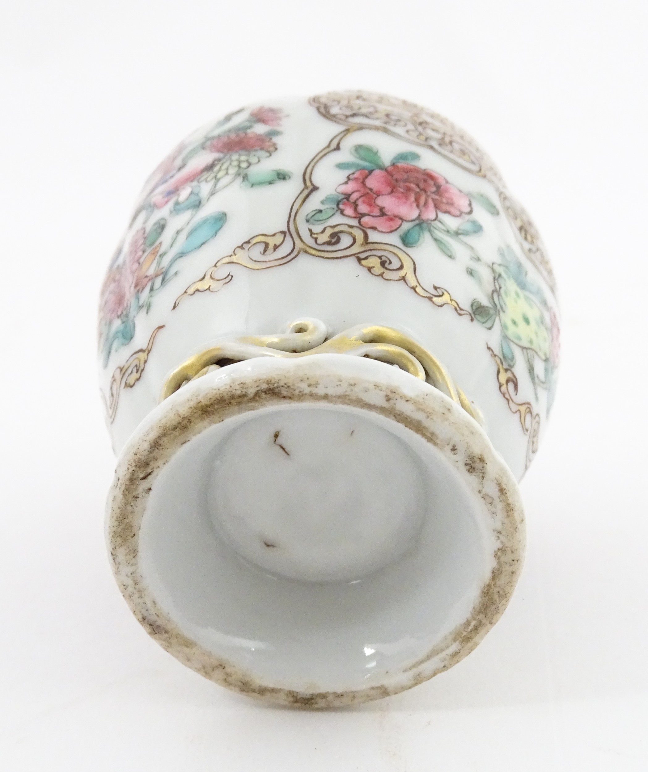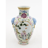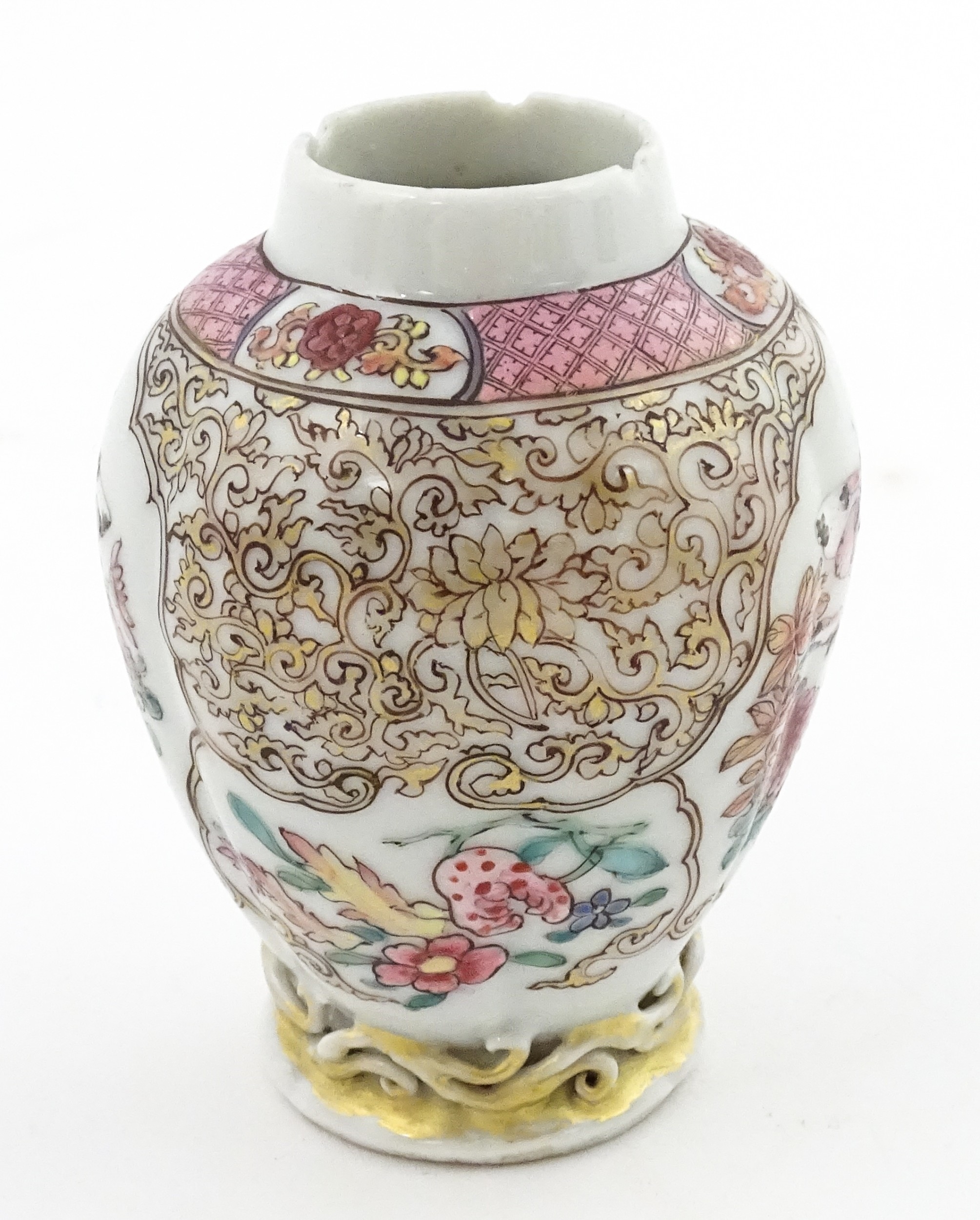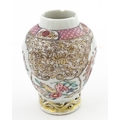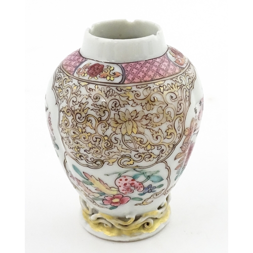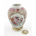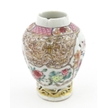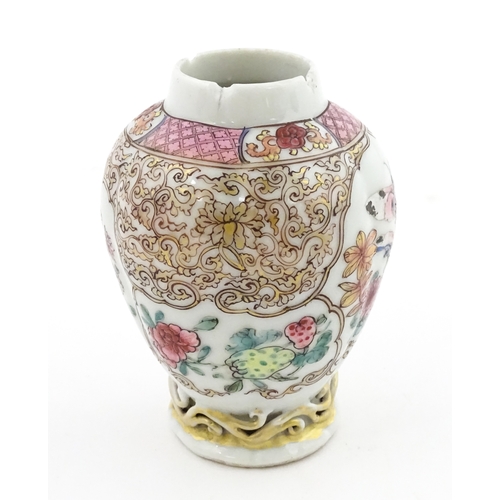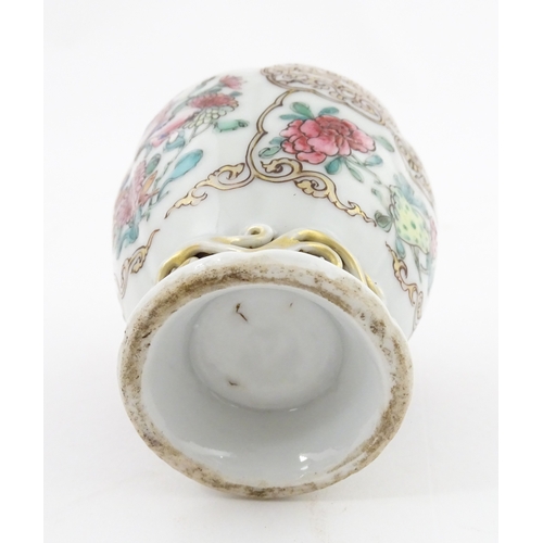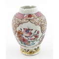 A small Chinese famille rose vase decorated with flowers and butterflies. Approx. 4" high