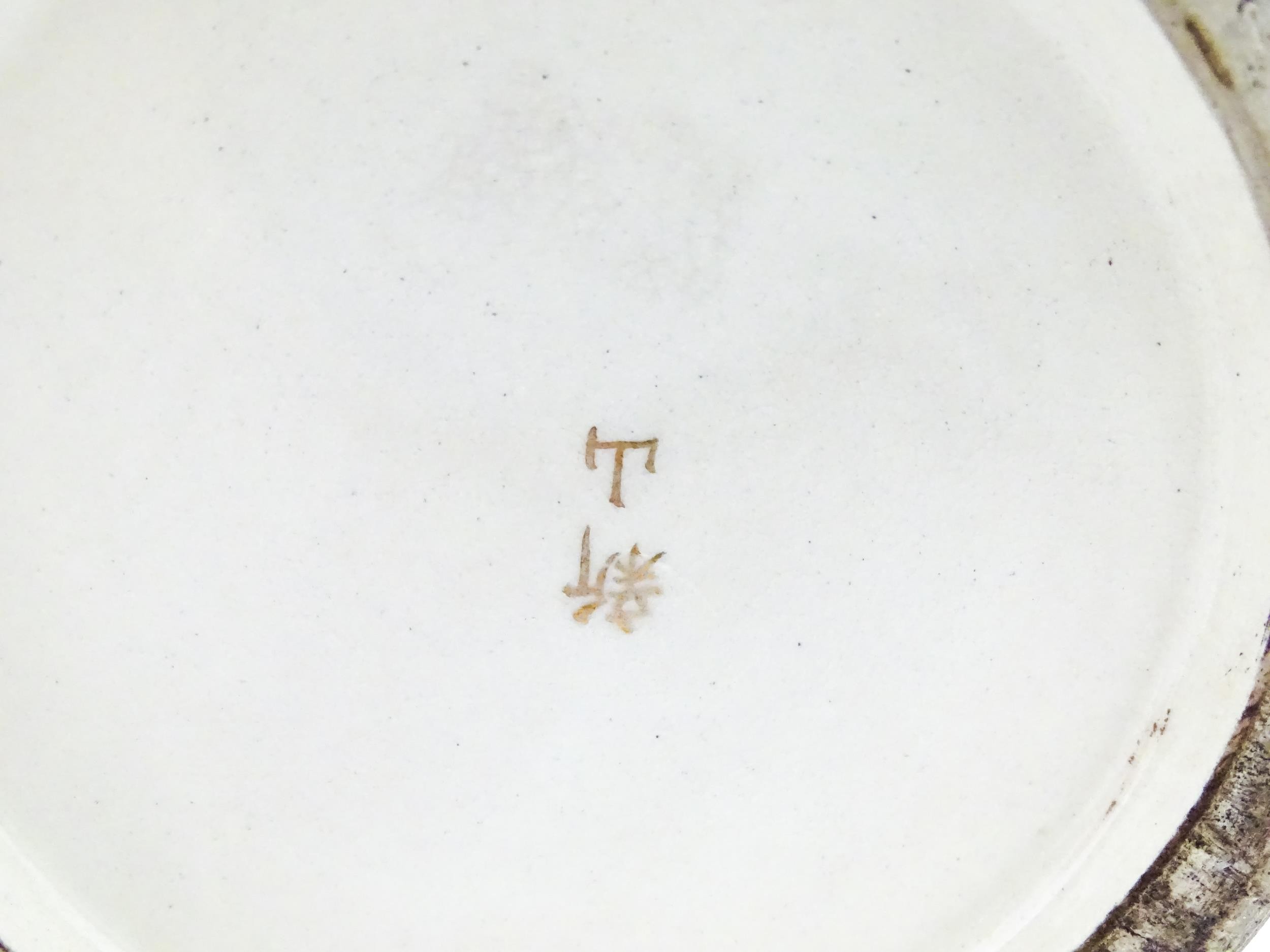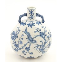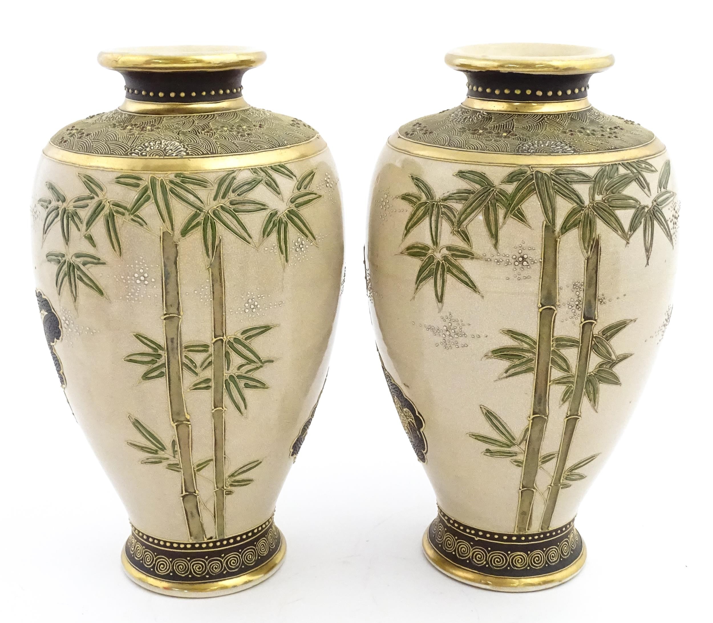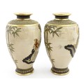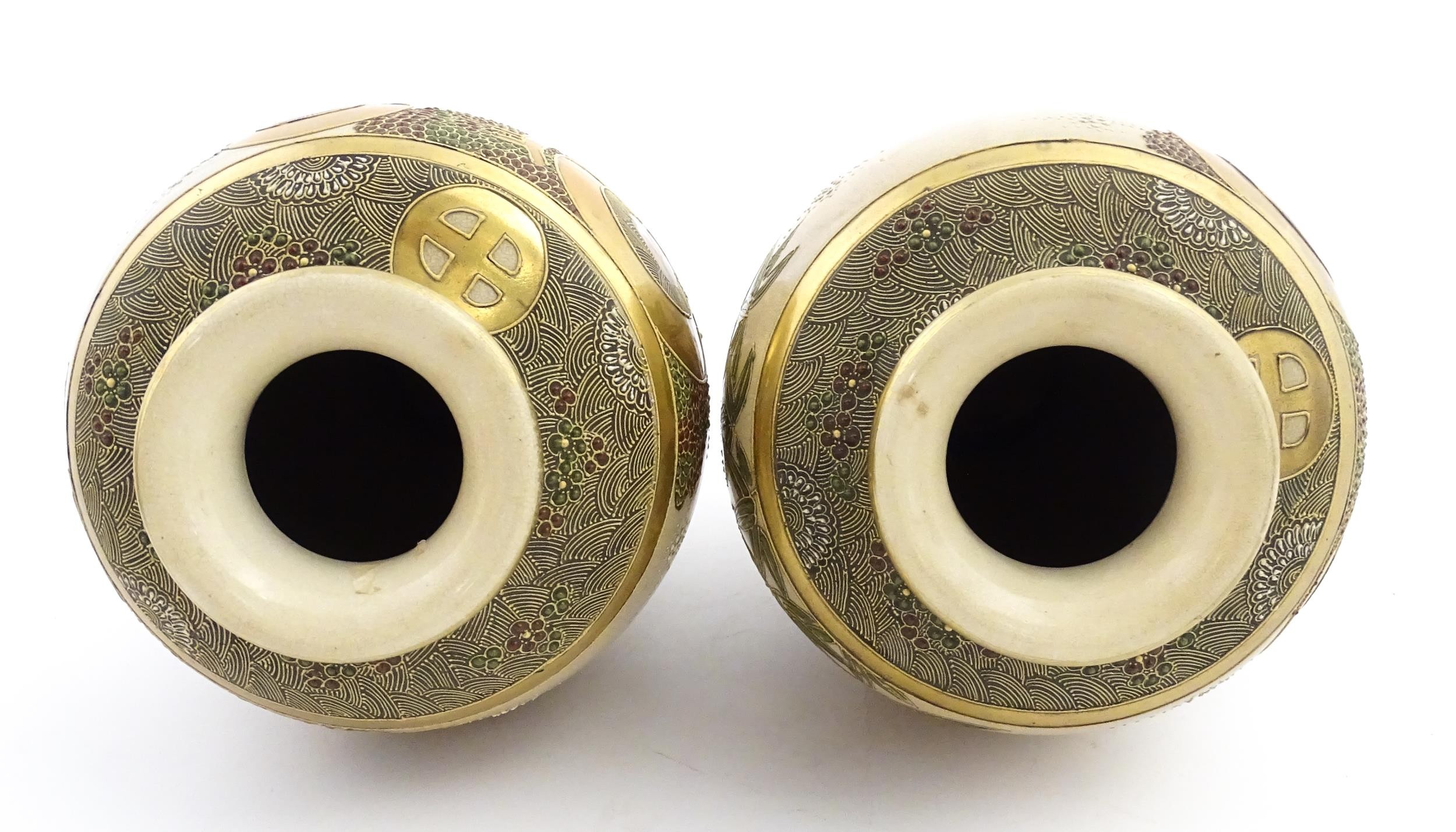 A pair of Japanese satsuma vases decorated with Immortal figures. Character marks under. Approx. 12 1/4" high (2)