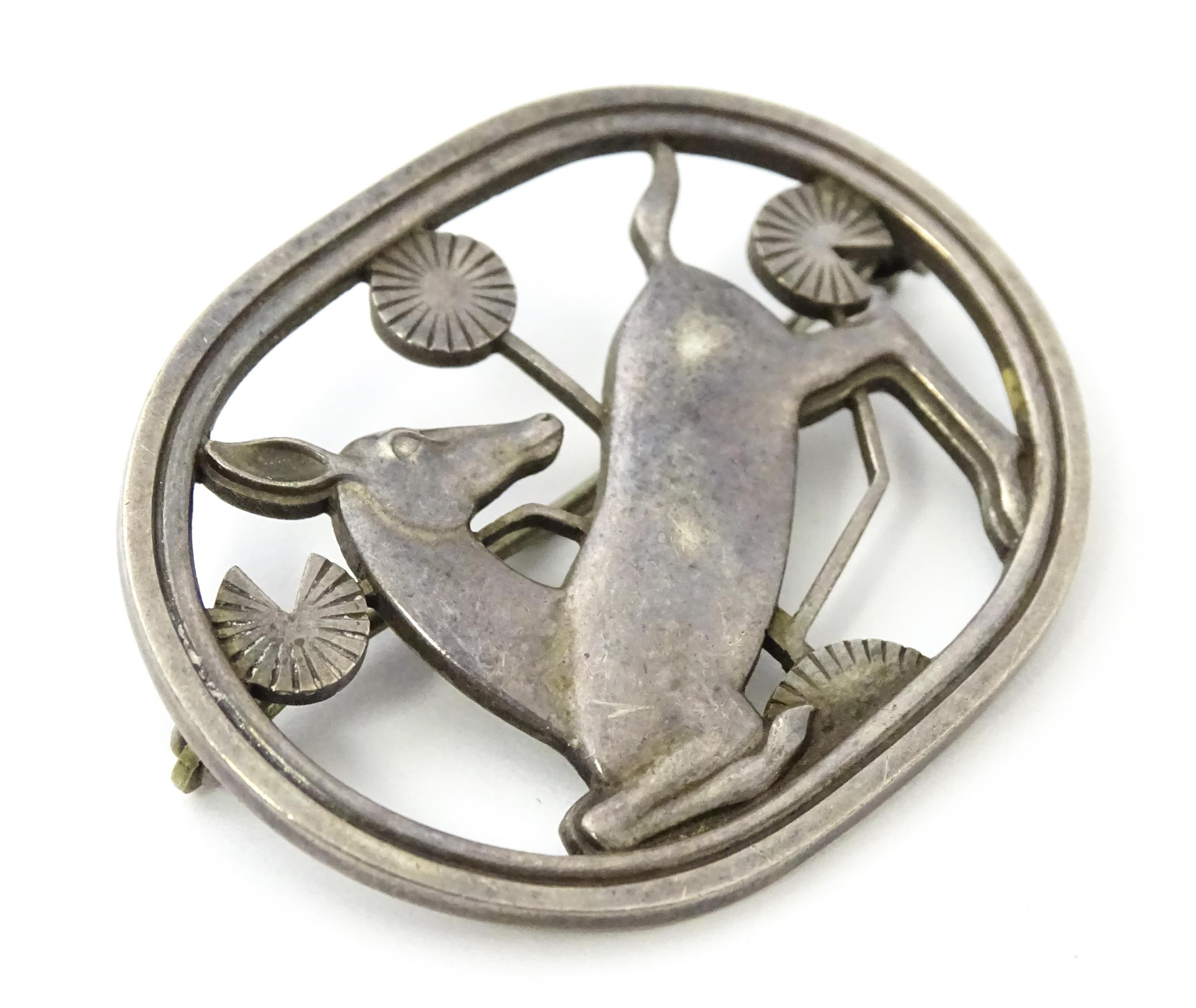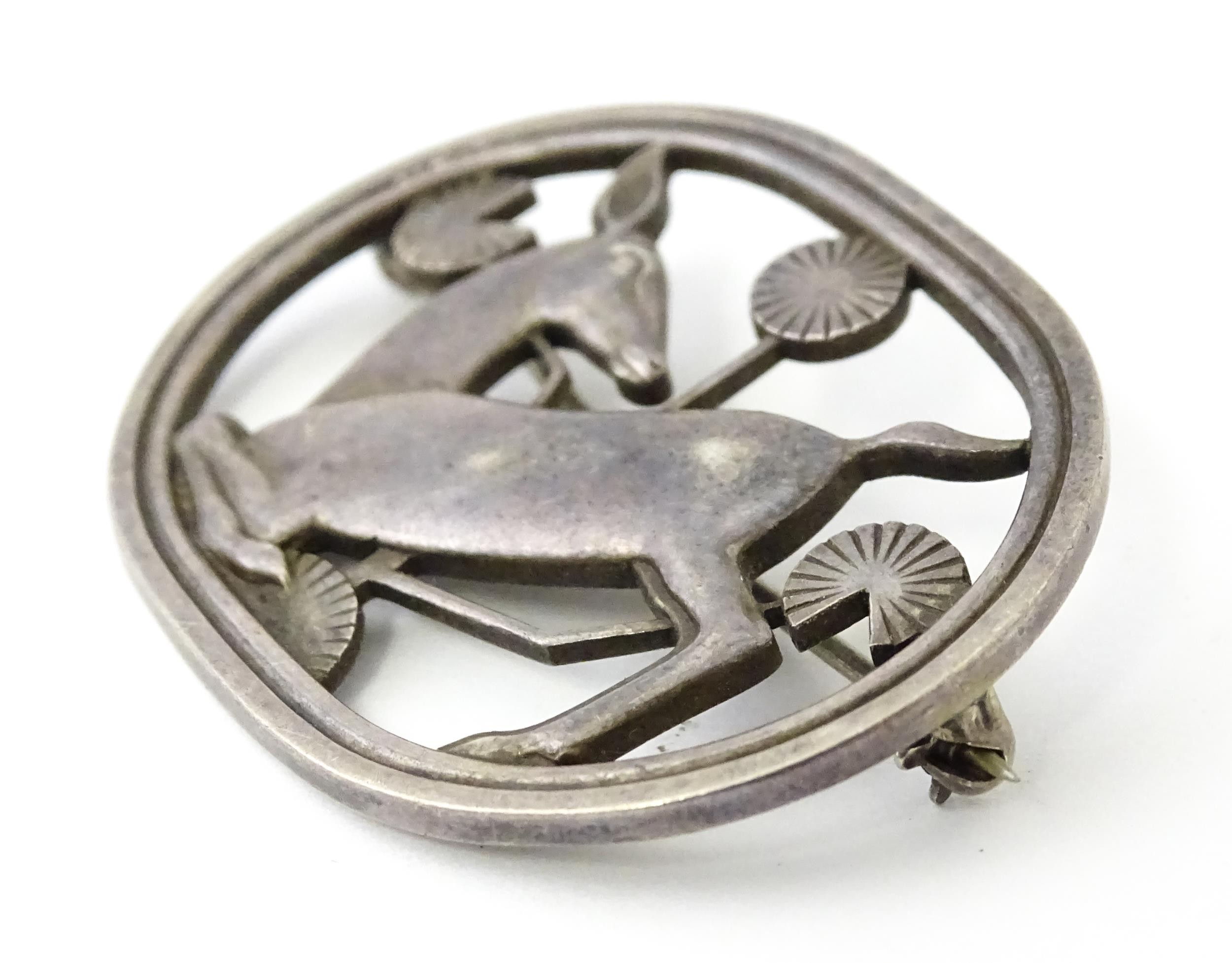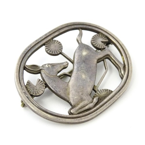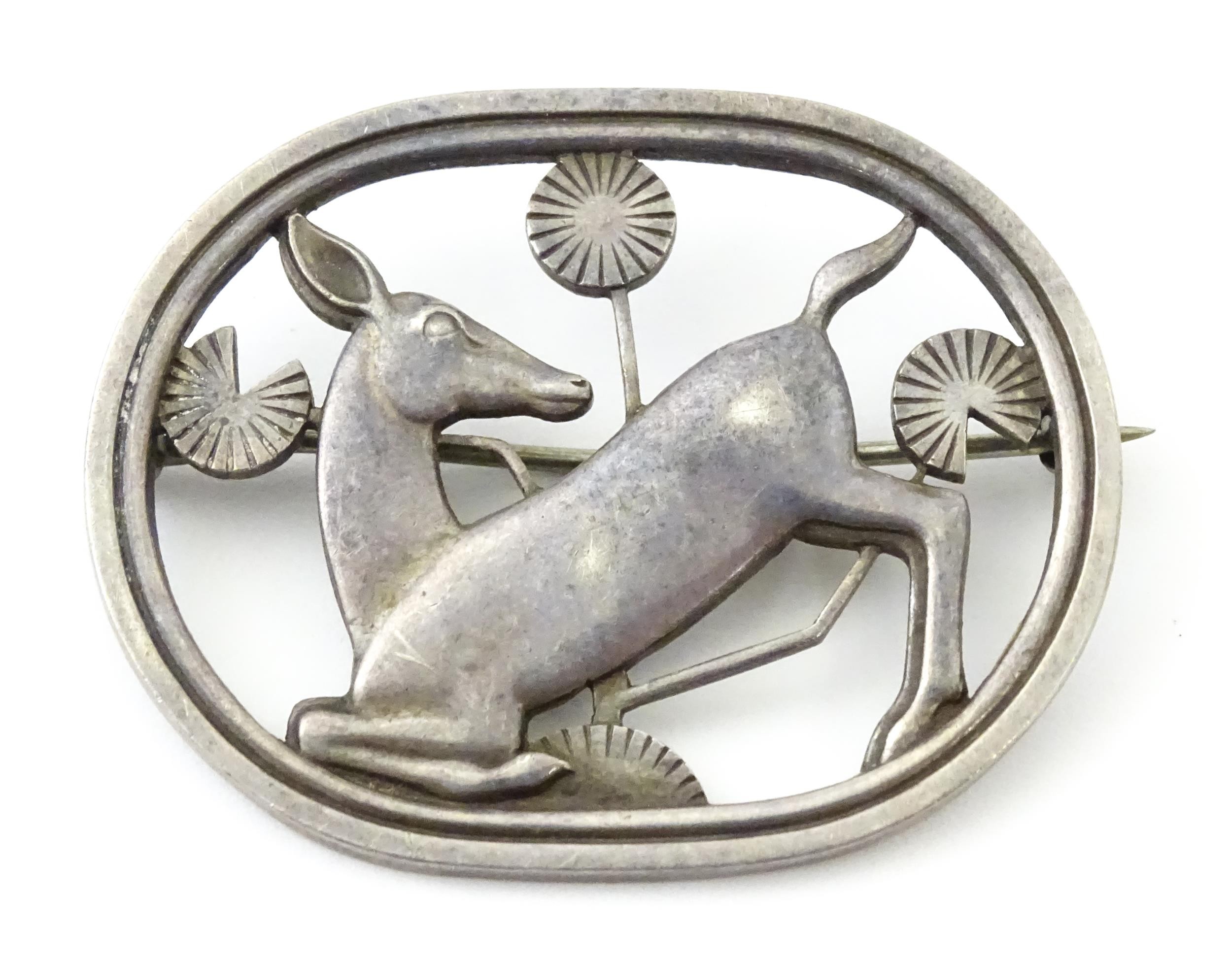A Georg Jensen silver brooch depicting a deer, designed by Arno Malinowski. Approx. 1 3/4" wide