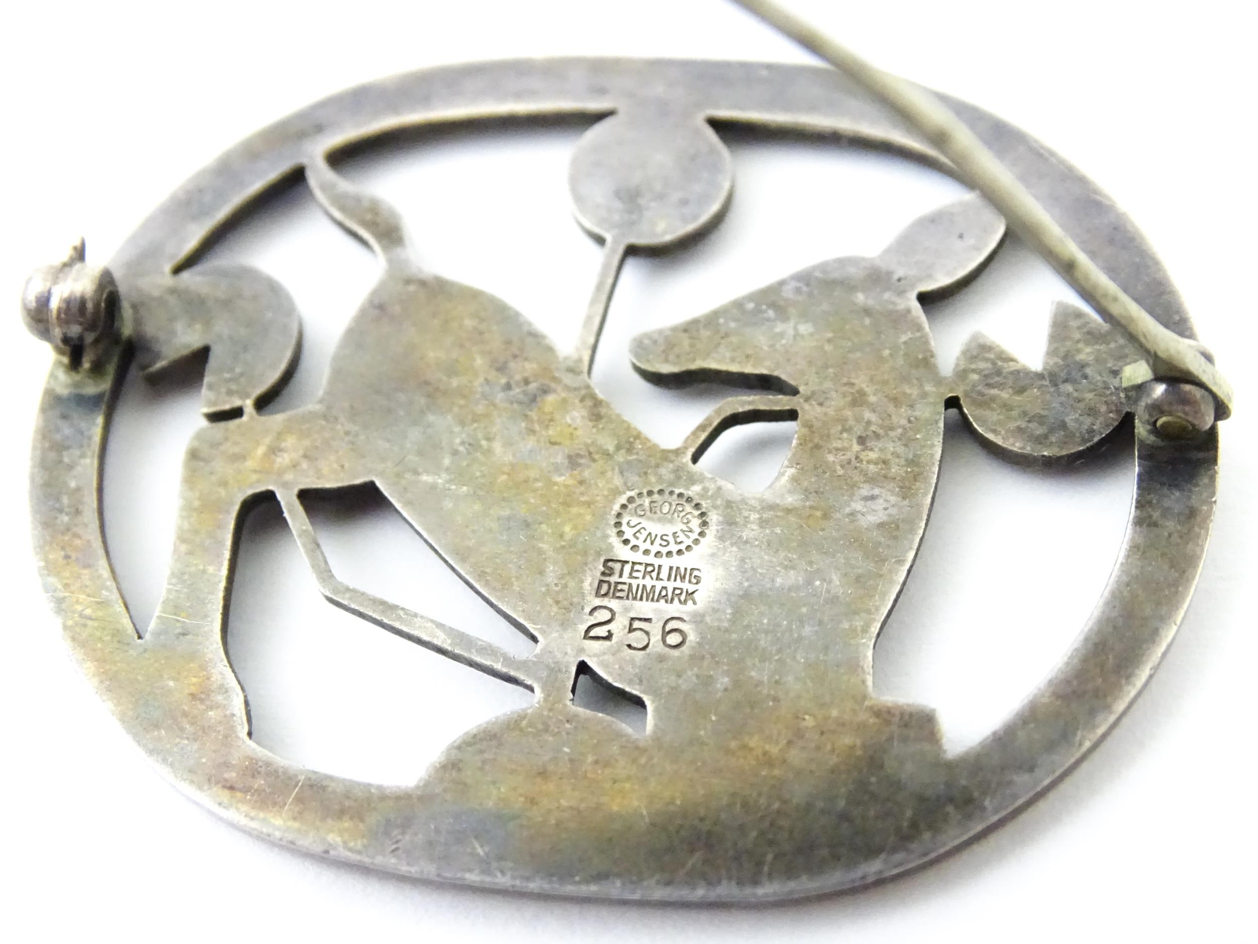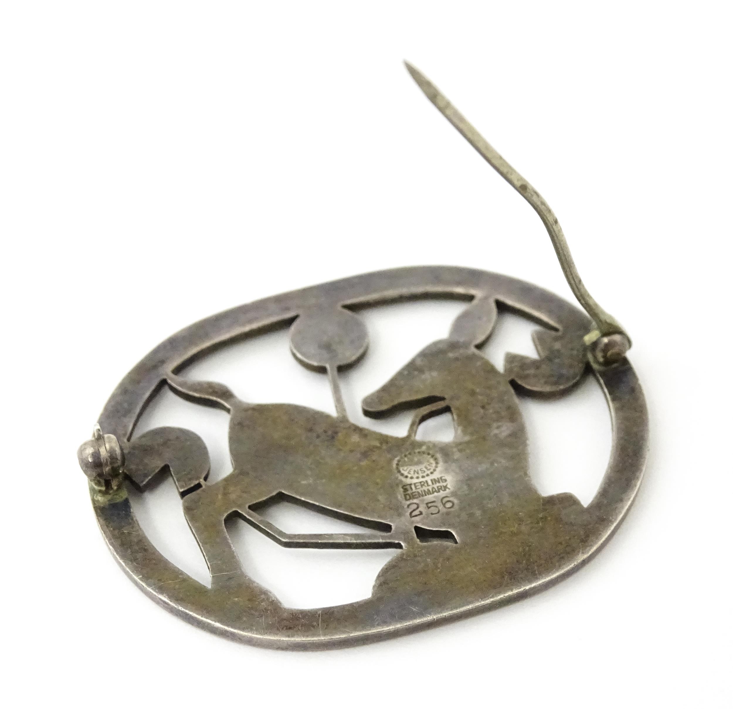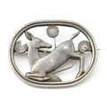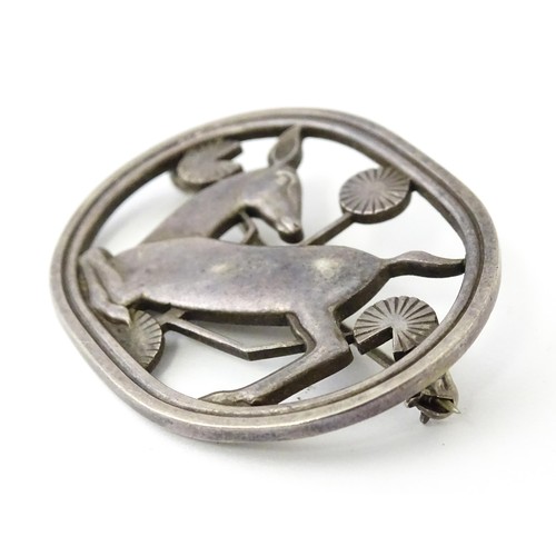 A Georg Jensen silver brooch depicting a deer, designed by Arno Malinowski. Approx. 1 3/4" wide